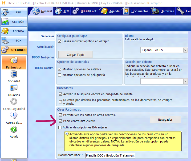 Para activar esta opción hay que ir a OPCIONES – PARÁMETROS – GENERAL – GENERALES y marcar la opción.