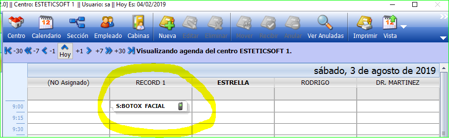 Esto hará que en la AGENDA aparezca una nueva columna con el nombre RECORD 1 para el centro 1, RECORD 2 para el centro 2 y así sucesivamente.