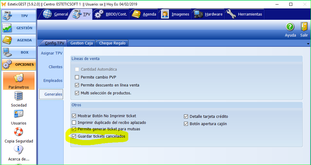 Recuerden que para activar los cambios realizados en los parámetros de la aplicación hay que salir de EsteticGEST y volver a entrar.