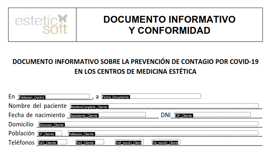 Esteticsoft pone a su disposición un servicio de edición y creación de formularios, póngase en contacto con nosotros para que le facilitemos la tarifa.