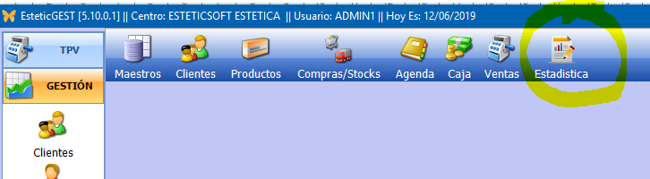 En esta versión de EsteticGEST se han añadido nuevos informes (listados) personalizables, se encuentran pulsando el botón ESTADISTICA que se ha añadido a las opciones ya existentes.