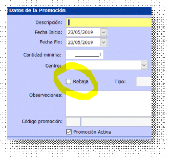 Si no está marcado el programa interpreta que es una promoción cruzada y si está marcado entiende que es una promoción de Rebajas.