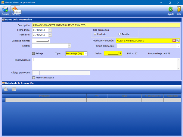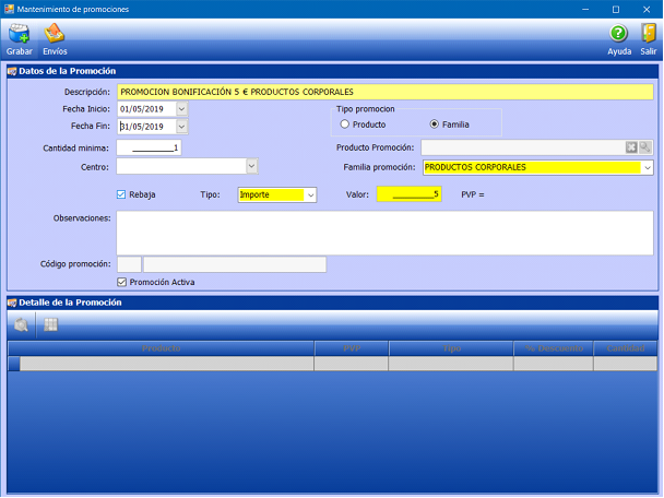 Terminada la entrada de los datos hay que proceder a la grabación de la promoción.