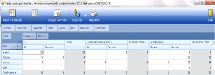 · Formato: Nuevo formato, cargar formato y Editar formato: Cuando se modifica la disposición de columnas, filas o datos del listado, se puede guardar el nuevo formato para posteriormente recuperarlo con los mismos o distintos datos.